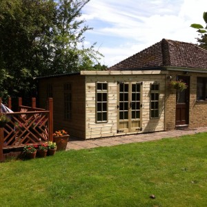 The Ashford Summerhouse is the apex alternative to our 'Hastings Summerhouse'. Joinery-made double doors and modern style windows with large toughened glass panes compliment the contemporary lines and allow light to flood in.