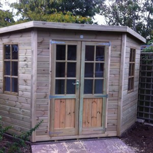 We offer two more versions of the corner shed; you can find them here: 'The Winchester' and 'The Richmond Summerhouse'
